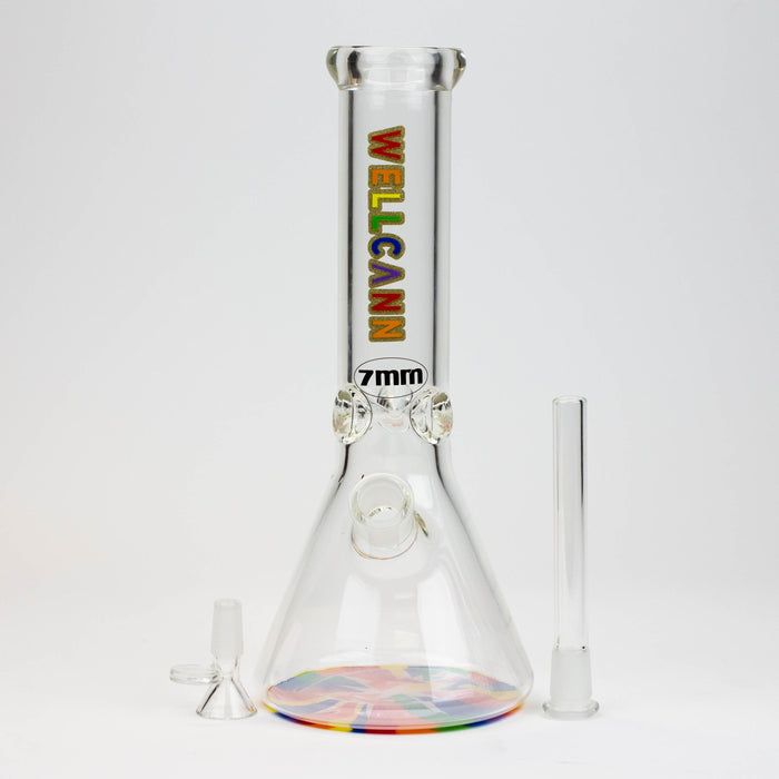 12" WellCann beaker 7 mm glass water bong with Colour Bottom